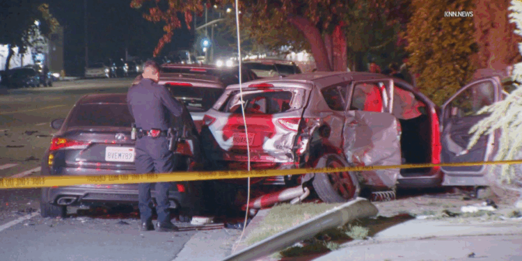 The Los Angeles Police Department confirmed to KTLA on Sunday that officers responded to calls of a two-car collision in the 14600 block of Polk Street at 11:42 p.m. on May 24.