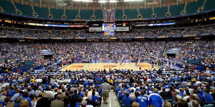 General view of the SEC Men’s Basketball Tournament Championship game between the University of Kentucky Wildcats and the University of Florida Gators at the Georgia Dome on March 14, 2004 in Atlanta, Georgia. (Doug Pensinger/Getty Images)