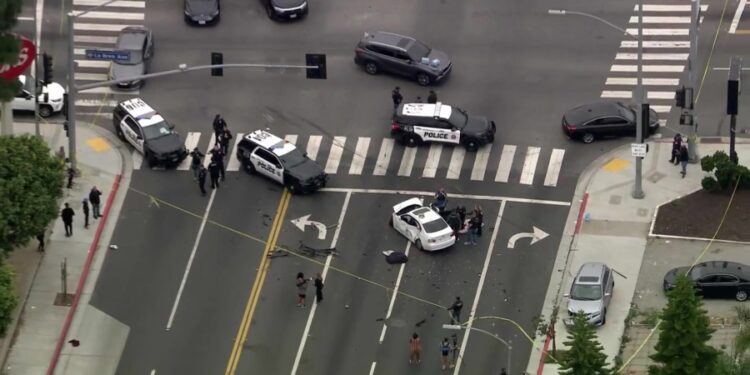 “However, it appears he ran a red light and collided with another vehicle,” Culver City police said, adding that, in addition to the suspect, there was a woman and two children in the vehicle. “The pursuit only lasted a couple of minutes.”