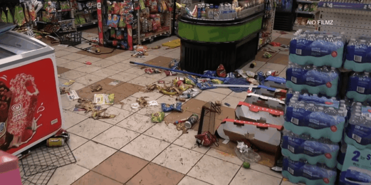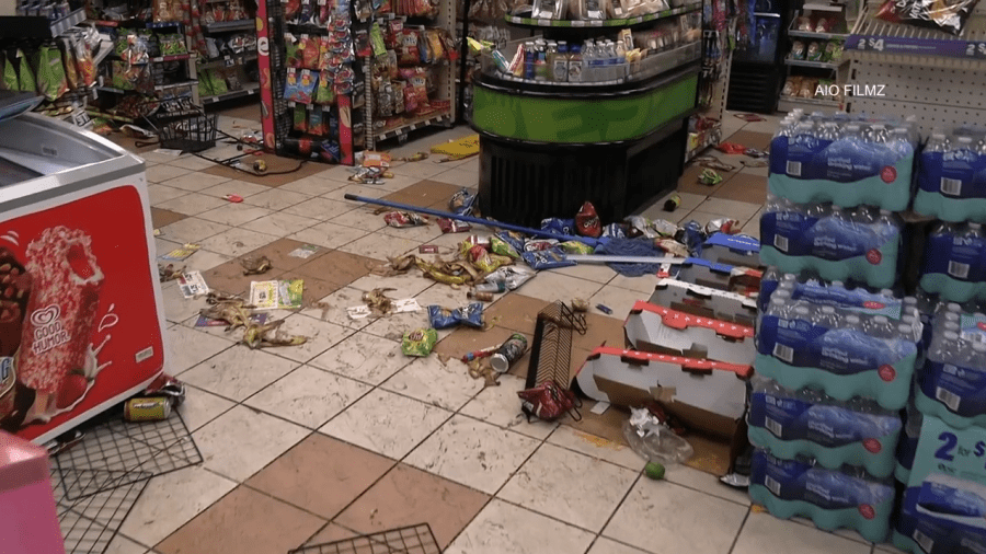 Shattered glass front doors and merchandise were seen scattered at both the beauty supply and adjacent auto repair shop. Merchandise was also strewn about the convenience store, and it appeared that an ATM within the store was broken into, although it is not known if any money was taken from it.