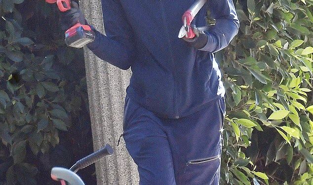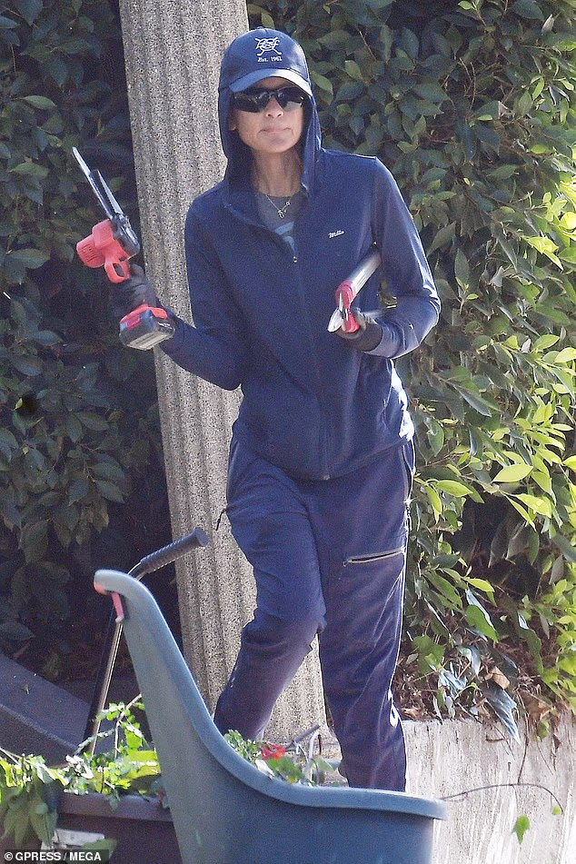 She was pictured again in front of the $2million Silver Lake home on Tuesday while taking out the trash – this time in a maroon coat over a grey top and blue pants.