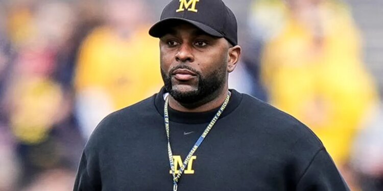 Sherrone Moore during warmups before a game against the Ohio State Buckeyes at Michigan Stadium Nov. 29, 2025, in Ann Arbor, Mich. (Luke Hales/Getty Images)