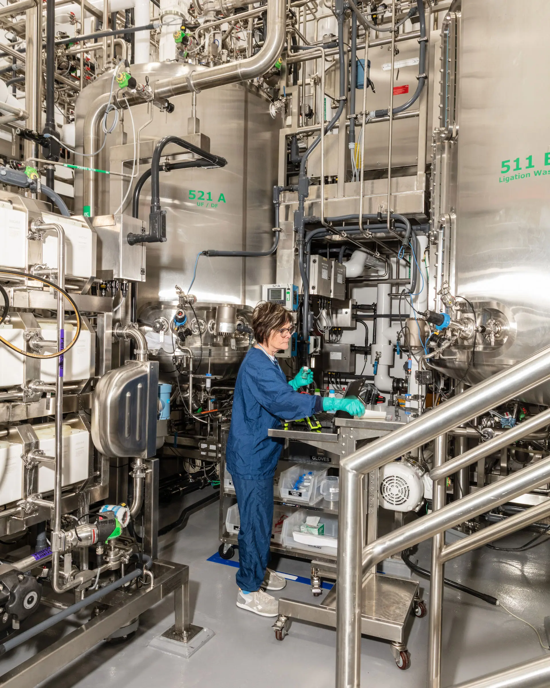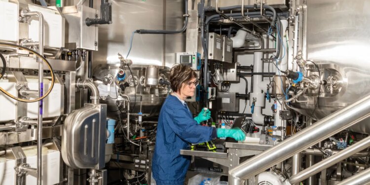 After the fermentation and purification process, semaglutide forms a beige paste with the consistency of pancake batter. In one of the few manual steps in the largely automated production, technicians scrape the paste from large funnels and freeze it at -20°C, where it keeps for up to five years. But given the popularity of Wegovy and the anticipated demand for the pill, the company currently has about a month’s supply of semaglutide in its freezers.