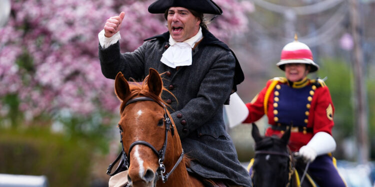 BOSTON (AP) — The clip-clop of horse hooves echoed as Paul Revere rode through the streets of Boston’s North End on Monday — a reenactment of his historic midnight ride, but with some modern-day tweaks: this time, the revolutionary hero set out under bright daylight and a police escort.