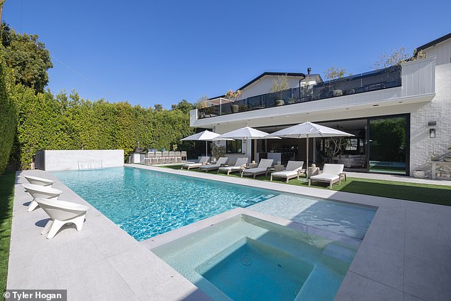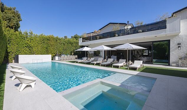 The home has various luxurious amenities a celebrity could want and more – a primary suite decked out with fireplace and terrace, a resort-style backyard with pool, and a state-of-the-art home theater with more than $100k in concealed AV equipment and ‘acoustically transparent finishes’, according to the listing.