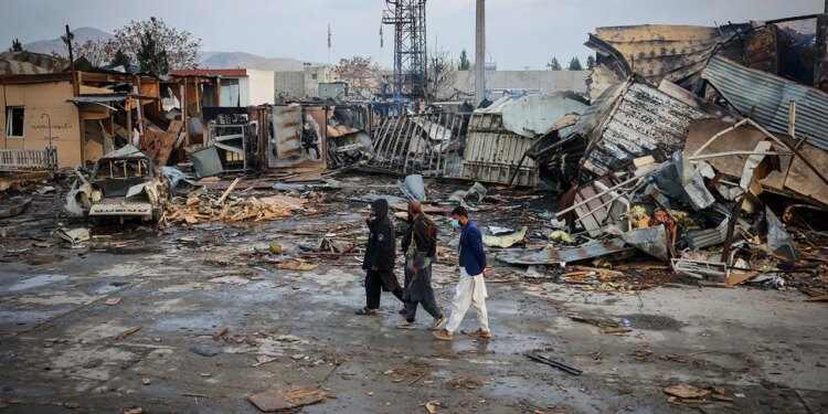 The site of a drug rehabilitation hospital that was destroyed in what the Taliban said was a Pakistani air strike in Kabul, Afghanistan, March 17, 2026. (Sayed Hassib/Reuters)