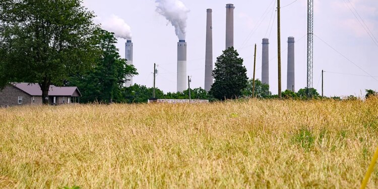 Stacks from the Hugh L. Spurlock Generating Station are seen on June 12, 2025, in Maysville, Kentucky. (Jeff Swensen/Getty Images)