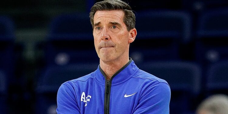 Air Force Falcons head coach Joe Scott in the first half against the Colorado State Rams at Clune Arena in Colorado Springs, Colorado, on Feb. 25, 2025. (Isaiah J. Downing/Imagn Images)