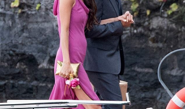 Amal Clooney, 47, put on yet another showstopping display as she and her husband George, 64, headed out for dinner with guests in Lake Como on Wednesday