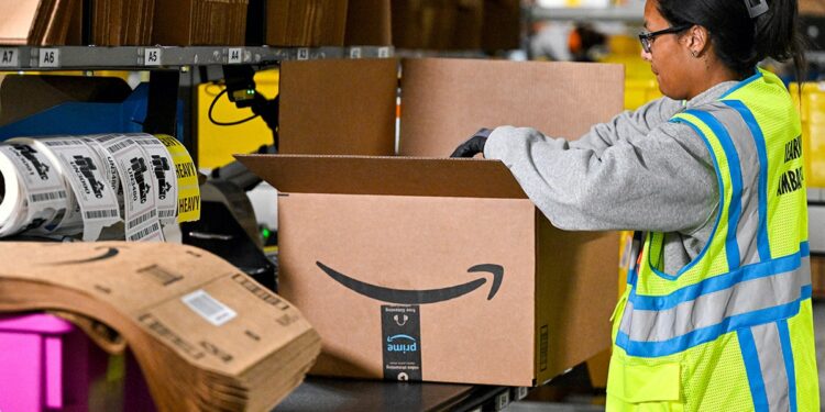 If a text promises Amazon work with high pay for little effort, treat it as suspicious and verify the job through official channels. (Jim Young/Bloomberg via Getty Images)