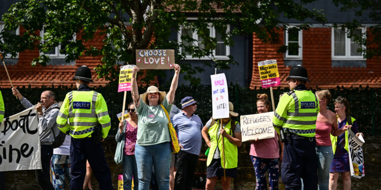 Far-right protesters and anti-racism campaigners have faced off at rallies across the UK against hotels housing asylum seekers. Police intervened in Liverpool to separate rival crowds, arresting a dozen people. It follows weeks of demonstrations after an asylum seeker was charged with sexual assault.
