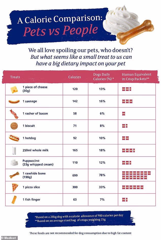 ‘It’s easy to view a few extra treats and sharing after dinner leftovers as harmless, but overindulgence can rapidly escalate into overweight and obesity,’ Dr Reena Patel, partner at Medivet Pinner, said.
