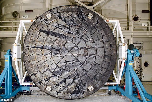As the Artemis II mission begins its return journey to Earth, experts have raised concerns over the safety of the Orion crew capsule’s heat shield. Pictured: The heat shield from the uncrewed Artemis I test