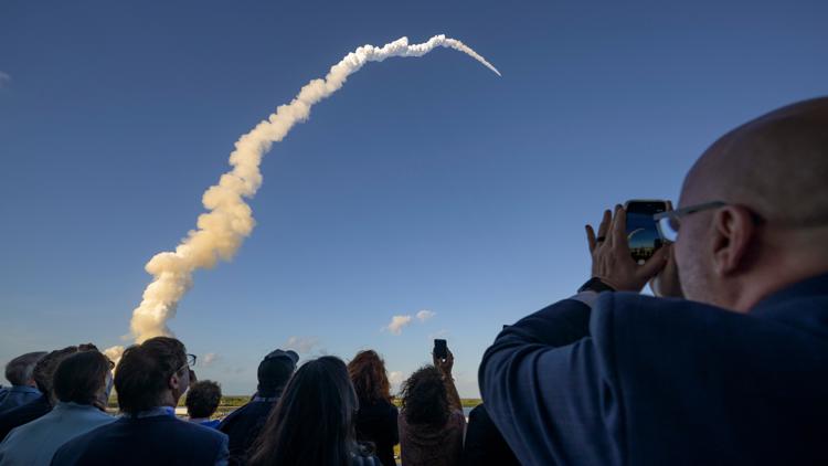 To set the mood, Mission Control’s wake-up music for the crew was “Green Light” by John Legend featuring André 3000. The song segued into the 3-2-1 of the astronauts’ thunderous liftoff, followed by a medley of greetings from NASA teams across the country.