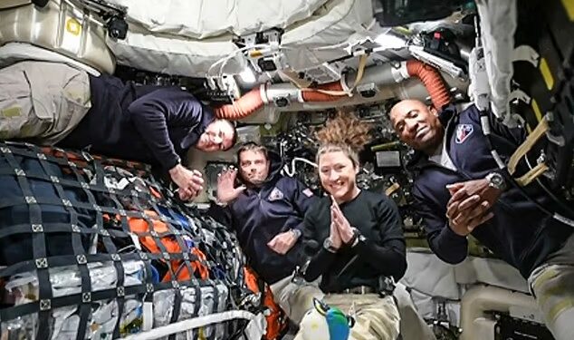 A short clip of Commander Reid Wiseman is making waves on social media, where he says: ‘This is the first time we’re going to send humans to the moon and, at the same time, have humans in low Earth orbit.’
