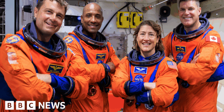 BBC/NasaReid Wiseman also brings back echoes of the 1960 Apollo Moonshots when he says that he hopes the Artemis II mission will be looked back on as a “tiny step in having humans on Mars and a sustained presence on the Moon”.