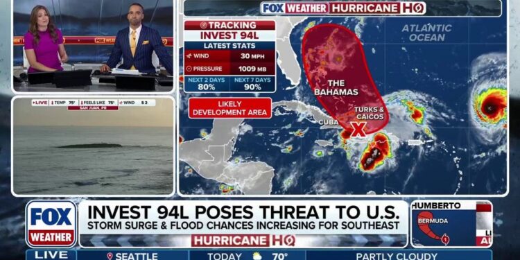 The National Hurricane Center (NHC) is closely monitoring the development of Invest 94L in the Atlantic as forecasters now say there’s not only a high chance it will become a tropical depression or Tropical Storm Imelda in the coming days, but also impact the U.S. East Coast.