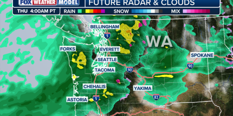Multiple rounds of rain are forecast to move into the coastal Washington region. Widespread rainfall totals of 3 to 5 inches are expected by Friday evening with localized amounts of 5 to 8 inches, especially in higher terrain.