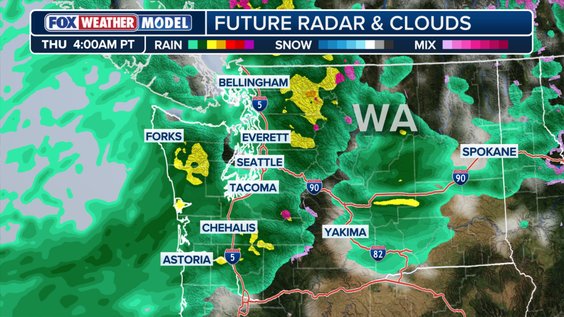 Flood Watches have been issued for the Seattle metro area, northern Washington and the Olympic Mountains. These watches will remain in effect through Friday afternoon as the heavy rain combined with the snowmelt may increase the risk of flooding, particularly along rivers, including the Skokomish River.