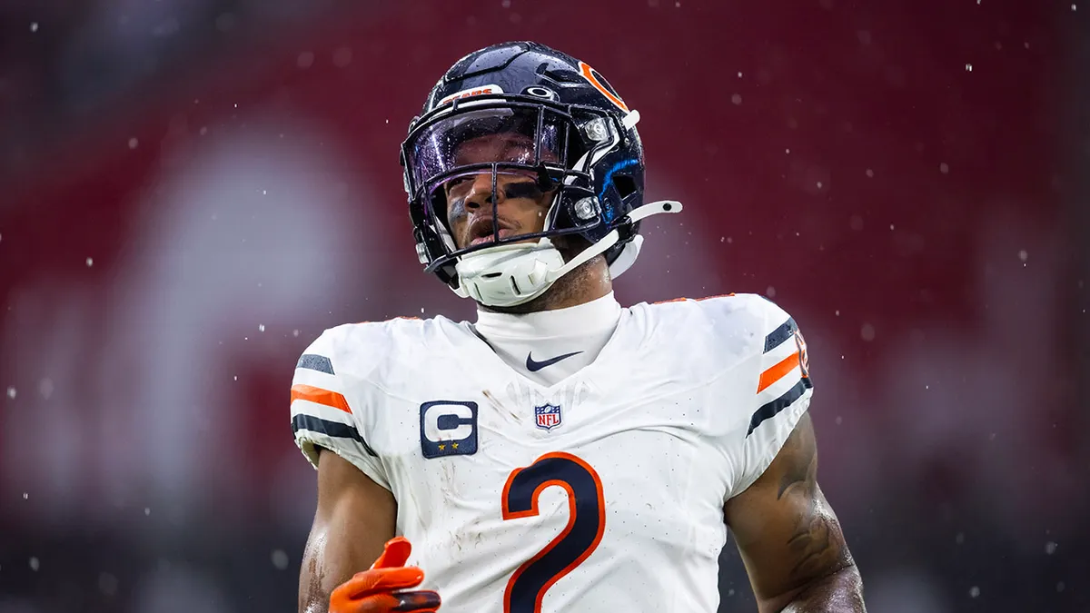 Chicago Bears wide receiver DJ Moore (2) against the Arizona Cardinals at State Farm Stadium in Glendale, Arizona. (Mark J. Rebilas/Imagn Images)