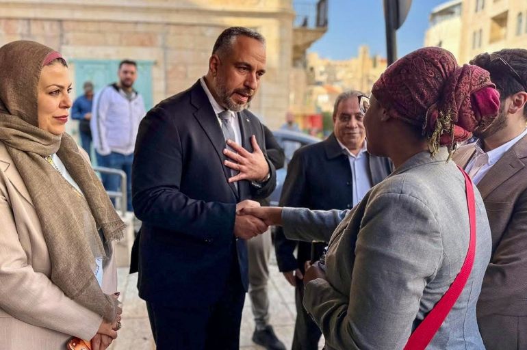Bethlehem’s Mayor Maher N Canawati greets visitors [Monjed Jadou/Al Jazeera]