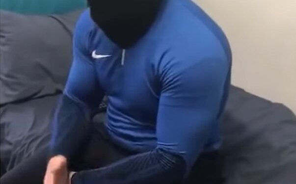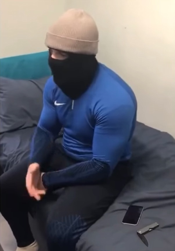 And he showed off muscles in a tight top, wearing a hat and balaclava.