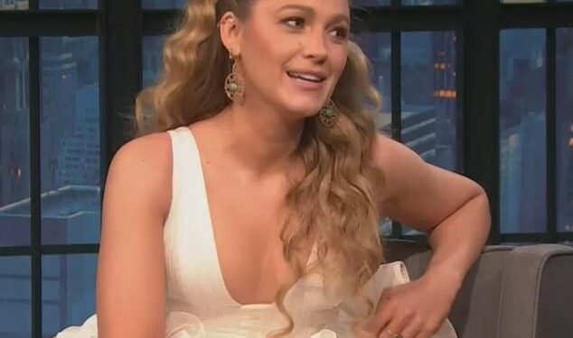 Blake Lively was chipper when she hit a talk show on Monday evening. The 37-year-old movie star was on Seth Meyer’s show to promote her film Another Simple Favor as she looked amazing in a fluffy white cocktail dress