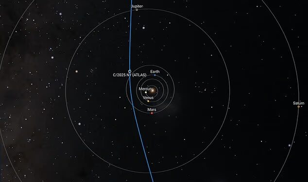 Dr Matthew Genge, an expert on near-Earth objects and astrobiology from Imperial College London, says: ‘Suggestions that 3I/Atlas was an alien spacecraft on route to Earth have thus been shown to be very wrong indeed.’