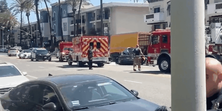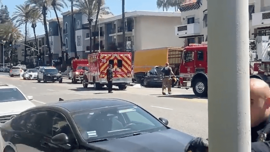The crash was first reported in the 4400 block of Woodman Avenue in Sherman Oaks around 10:15 a.m., the Los Angeles Fire Department stated.