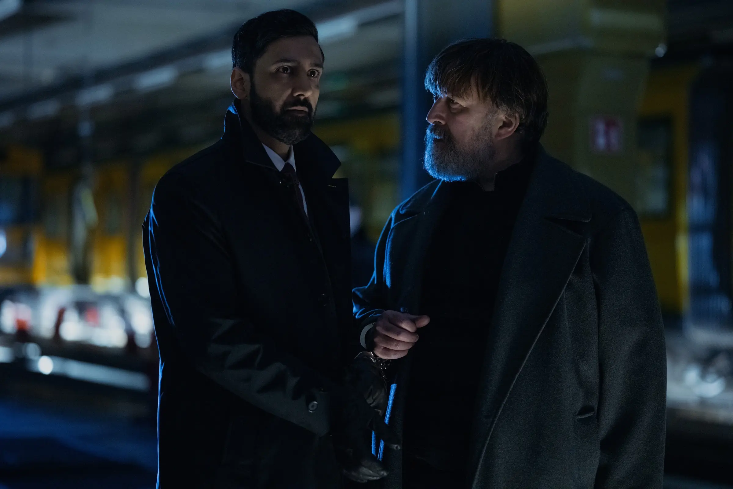 Lang calls Atterton, who’s in his prison cell with a smuggled phone, to tell him the job is done and that both Bailey-Brown and Sam have been terminated. Though Atterton is angry Lang called him—“I call you, you know the system,” he tells Lang—he doesn’t hang up. Atterton doesn’t realize his room is wiretapped, and the police are listening in on the conversation. They now have irrefutable evidence of both Lang and Atterton’s involvement in the Berlin hijacking. Lang demands more money and a safe route out of Berlin, as the police know he’s involved. But before he can continue the conversation with Atterton, he discovers Sam, whom he thought he had blown up, is chasing him.