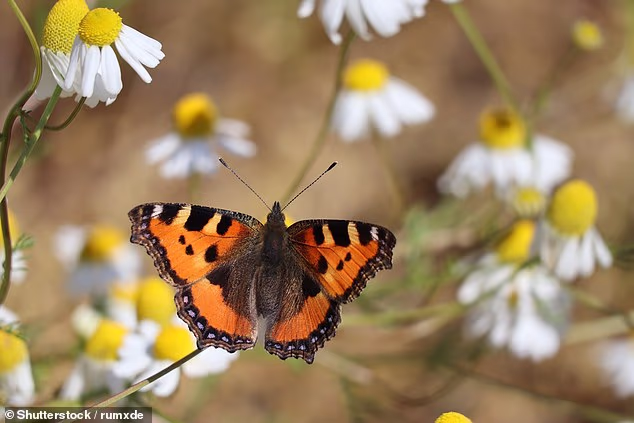 The small tortoiseshell (pictured) has seen its numbers decline by nearly 90 per cent over the last 50 years