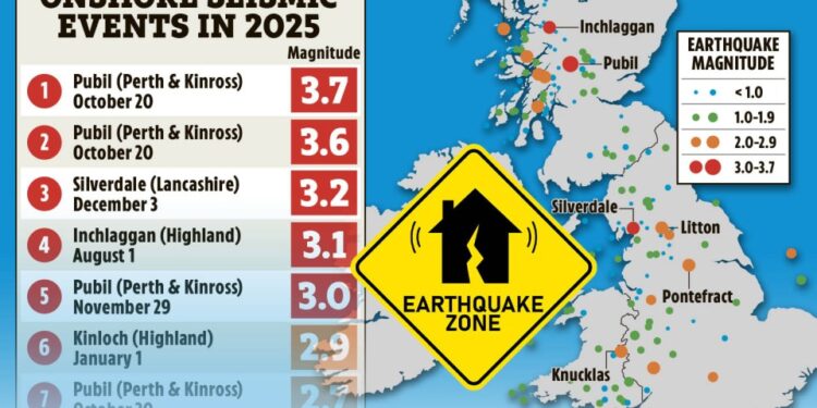 They triggered 198 reports to the British Geological Survey, with one resident near Loch Lyon in Perth and Kinross saying it felt “like a subway under my house”.