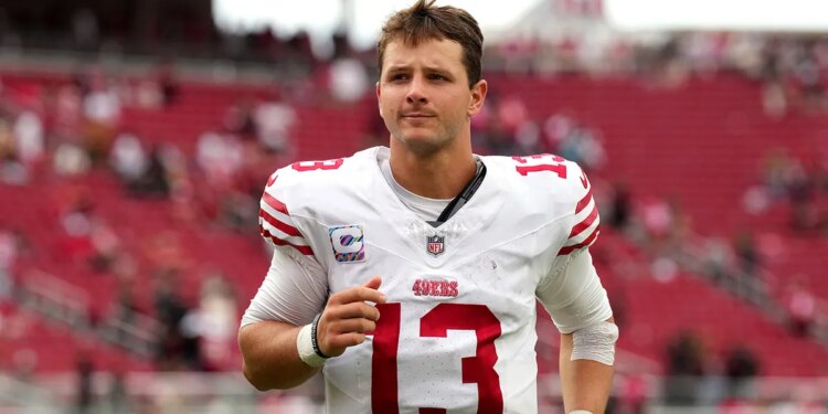 San Francisco 49ers quarterback Brock Purdy (13) after the game against the Jacksonville Jaguars at Levi’s Stadium in Santa Clara, California, on Sept. 28, 2025. (Darren Yamashita/Imagn Images)
