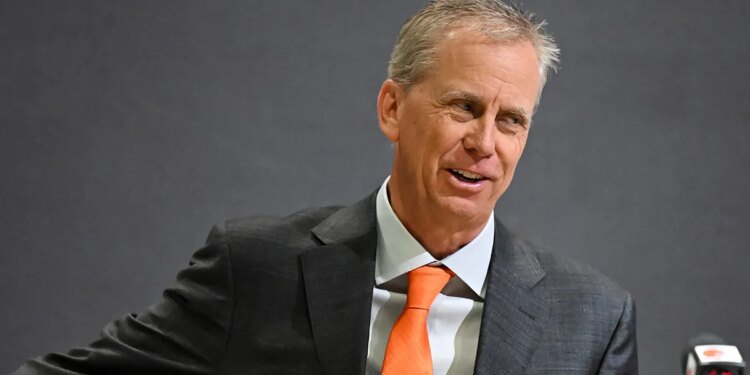 Todd Monken speaks to the media after being introduced as head coach of the Cleveland Browns during a press conference at CrossCountry Mortgage Campus Feb. 3, 2026, in Berea, Ohio. (Nick Cammett/Getty Images)