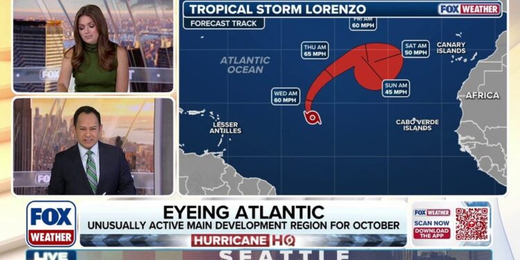 Statistics on Tropical Storm Lorenzo in the Atlantic.