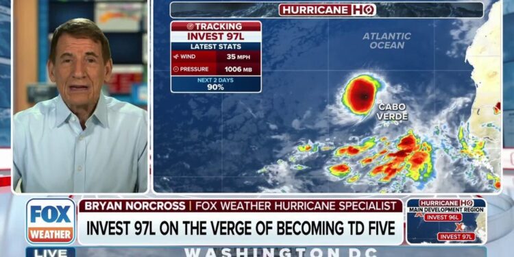 More disturbances are forecast to move off Africa behind 97L, though the long-range computer forecasts don’t show any of them developing quickly.
