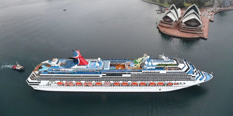The Carnival Splendor in Australia, near the Sydney Opera House. A passenger on the ship reportedly died last week while snorkeling off the coast of Brisbane. (Carnival Cruise Line)