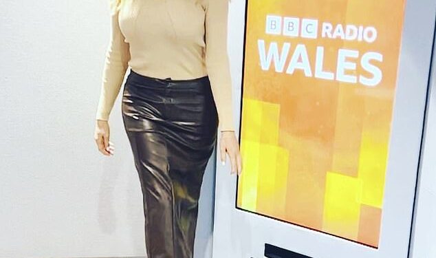 The mother-of-two wore and former I’m a Celebrity contestant let down her wavy blonde tresses, which framed her face, demonstrating that blondes really do have all the fun as she took a moment from her hectic schedule at BBC Radio Wales for the quick video.