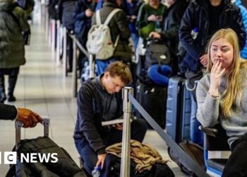 Read moreGetty ImagesHundreds of people were stranded at Amsterdam airport Intense snowfall and icy weather conditions have caused widespread travel disruption...
