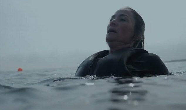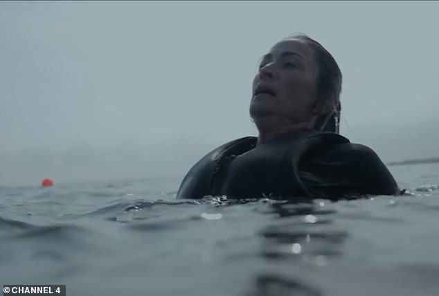 Rebecca, 48, could be seen swimming towards the checkpoint before stopping dead in the water, remaining to float as the DS’ watched on