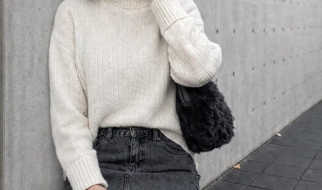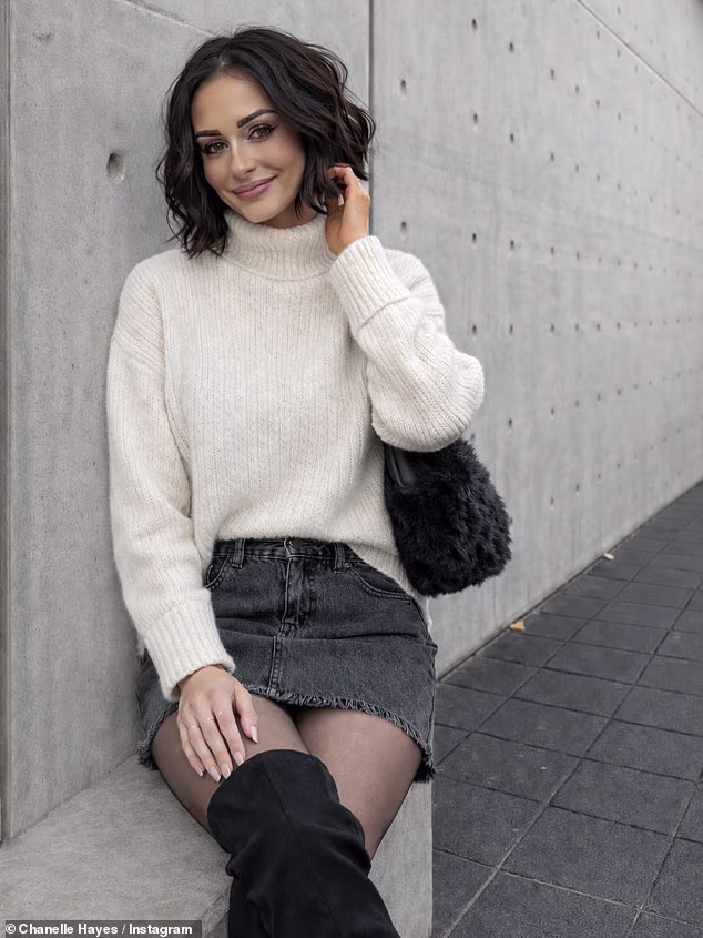 Chanelle put on a leggy display as she slipped into a dark denim mini skirt which she paired with a white turtle neck jumper.