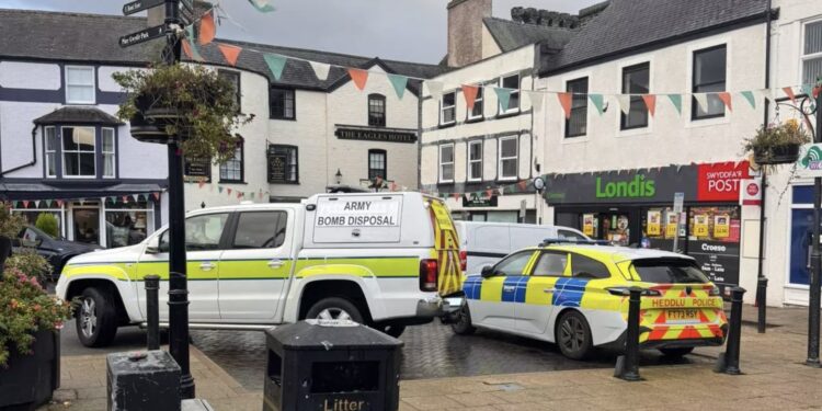 Army explosive experts rushed to Barnardo’s charity shop in Llanrwst, North Wales after a firework was found in a bag.
