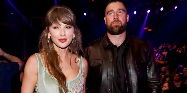 Taylor Swift and Travis Kelce at the 2026 iHeartRadio Music Awards held at Dolby Theatre March 26, 2026, in Los Angeles. (Christopher Polk/Billboard via Getty Images)