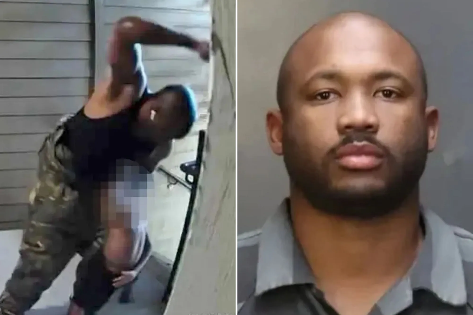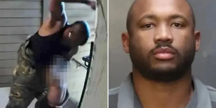 The 29-year-old man can be seen picking up the boy and hitting him at least five times with a closed fist to the torso.