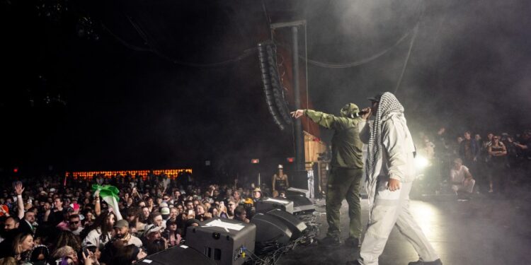 “The Palestinians have nowhere to go. It’s their f—ing home. And they’re bombing them from the skies,” band member Mo Chara told the audience. “If you’re not calling it a genocide what the f— are you calling it?”
