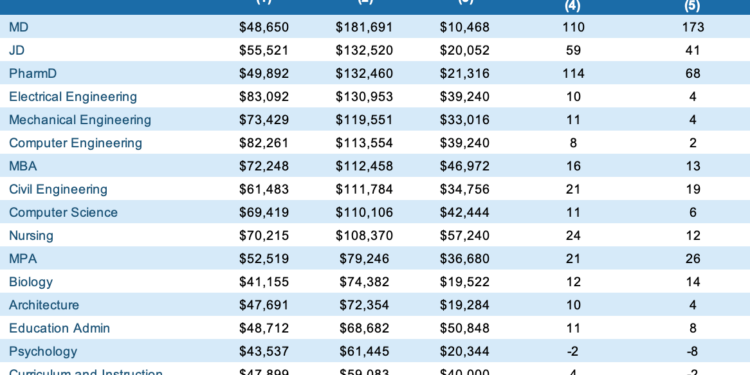 Of course, many heading into those master’s degrees often majored in the same fields in undergraduate degrees, which already have high average annual earnings, explaining the marginal gains observed in the study. Electrical and computer engineering graduates, for instance, earn over $82,000 annually before even starting their graduate programs, according to the study.