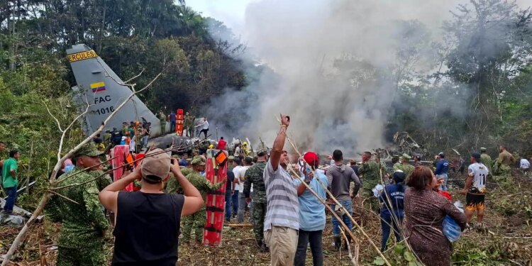 Emergency crews and local residents rushed to help survivors after a deadly military plane crash in southern Colombia March 23, 2026. (Colombia’s Armed Forces press office via AP)