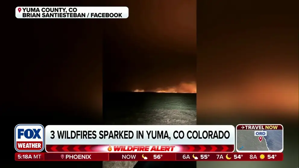 Wildfires that sparked in Yuma County, Colorado on Wednesday night fueled by powerful winds following a powerful coast-to-coast storm. Officials said the flames consumed more than 14,000 acres but no one was significantly injured.