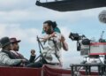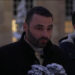 The person is seen in what looks like light-colored pants and a dark, hooded coat.