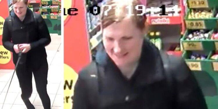 CCTV footage from a shop shows the woman police would like to speak to wearing black trousers and jacket, as well as a backpack.